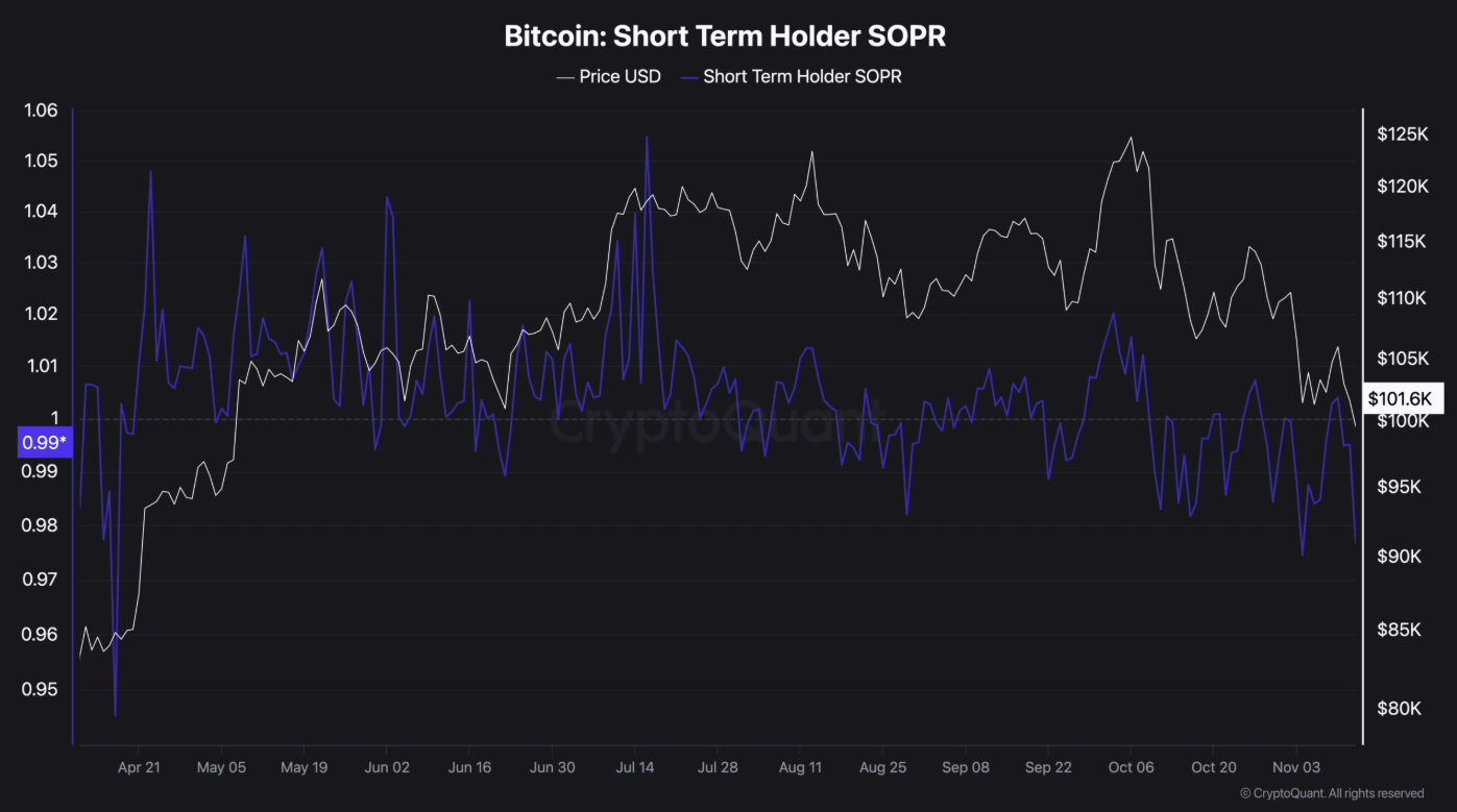 Các nhà đầu tư ngắn hạn đang trải qua giai đoạn lỗ đỉnh điểm, phản ánh sự kiệt quệ và giảm động lực nắm giữ tài sản. Chỉ số SOPR của nhóm này dao động quanh mức 0 — một vùng lịch sử thường báo hiệu khả năng đảo chiều.