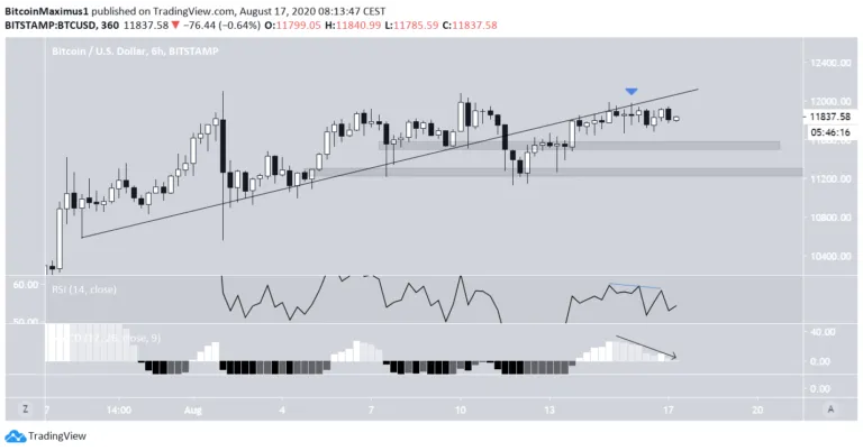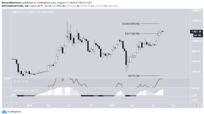 Bitcoin đạt mức cao 12,100 đô la vào ngày 2/8 và giảm mạnh trong cùng ngày. Trong quá trình phục hồi, giá vẫn chưa breakout qua ngưỡng này.