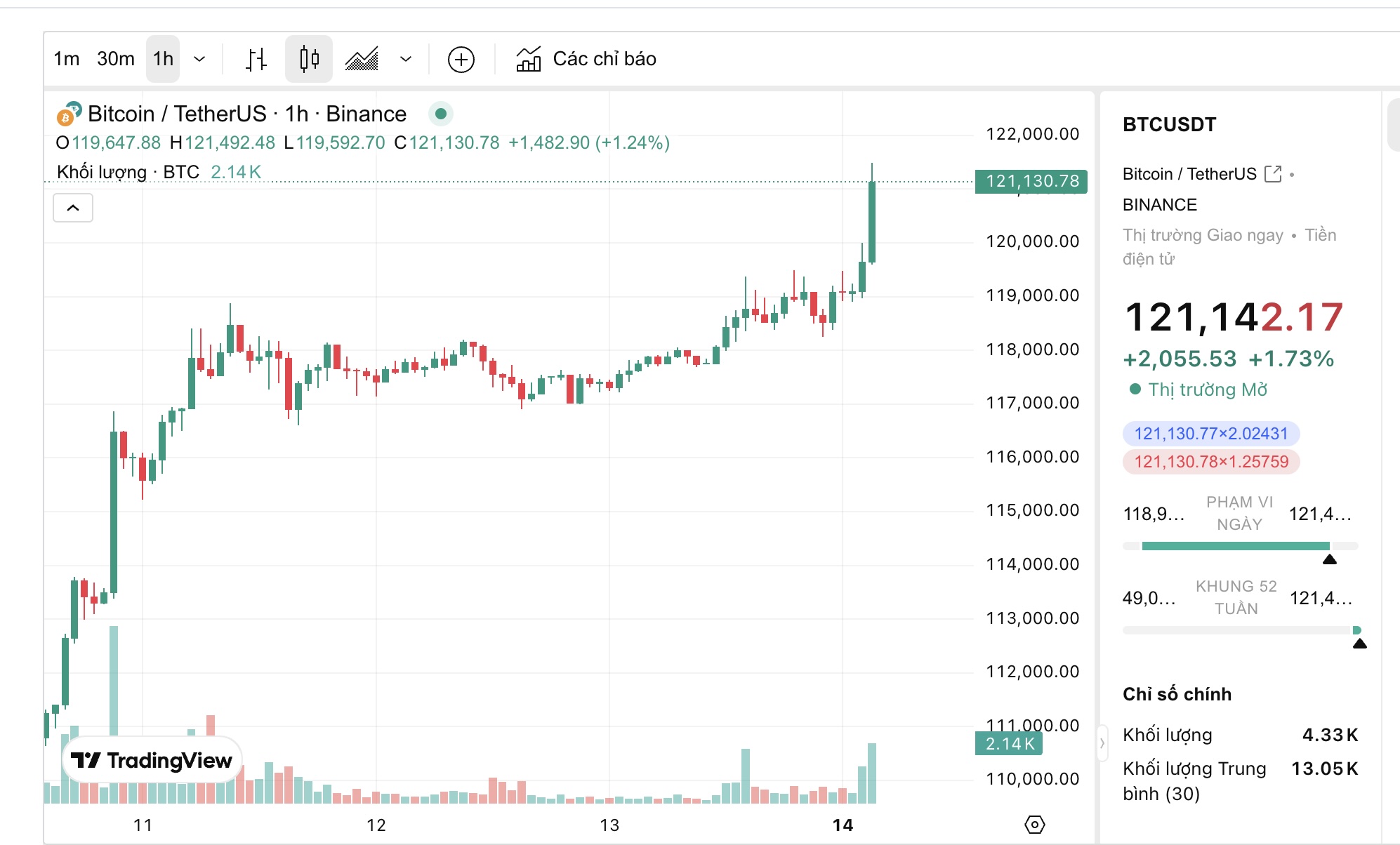 Bitcoin (BTC) tiếp tục đà tăng trong tháng 7, chính thức vượt mốc cao nhất mọi thời đại mới vượt mức 120.000 USD hôm nay. Đồng tiền số hàng đầu hiện đã tăng 15% trong tháng này, hướng tới việc hoàn tất cây nến xanh tháng thứ ba liên tiếp.