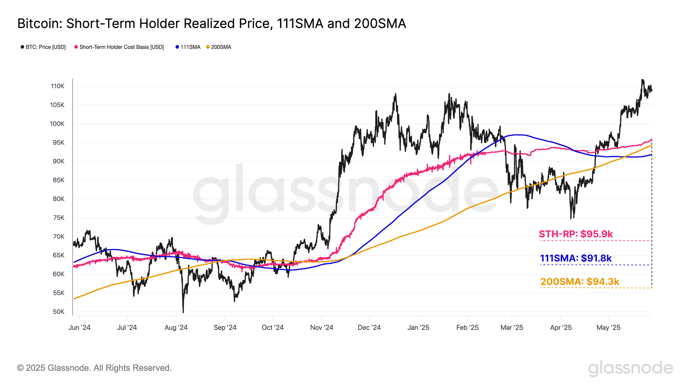 BTC hiện đang giao dịch cao hơn đáng kể so với các ngưỡng trung bình quan trọng: đường MA 111 ngày (91.800 USD), MA 200 ngày (94.300 USD) và chi phí trung bình của nhà đầu tư ngắn hạn (95.900 USD), cho thấy xu hướng tăng vẫn rất vững chắc.
