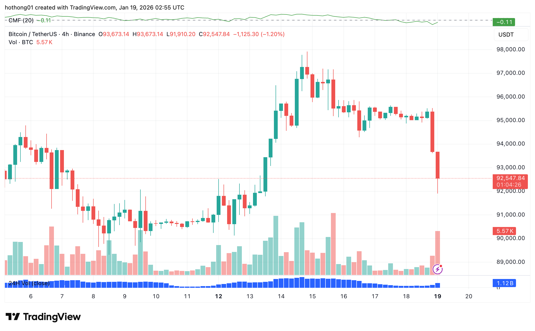 Theo dữ liệu từ CoinPhoton, giá Bitcoin đã giảm từ 95.500 USD xuống còn 92.000 USD, tương đương mức sụt giảm gần 3% chỉ trong vài giờ. Các đồng crypto lớn khác như ether, XRP và Solana cũng đồng loạt đi xuống, bám sát diễn biến của bitcoin.