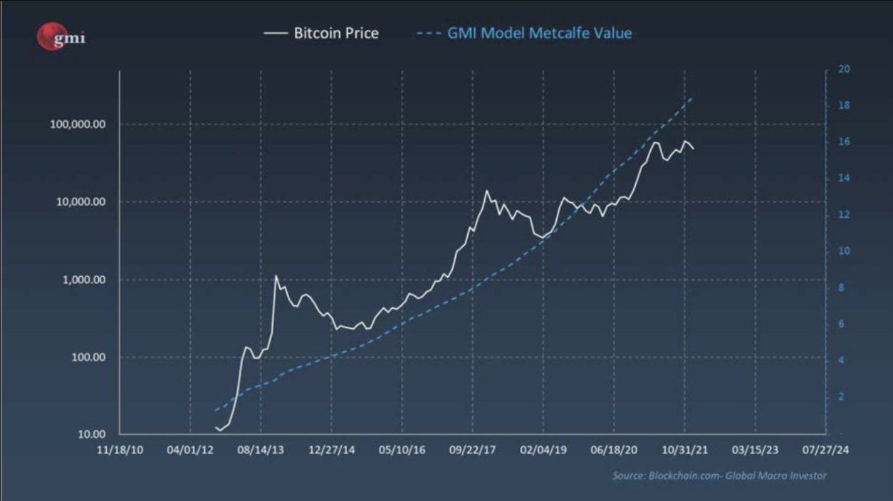 Pal cũng cho biết thêm rằng dựa trên định luật Metcalfe, giá Bitcoin sẽ dao động trong khoảng $ 100.000, cho thấy rằng BTC đang bị định giá thấp hơn rất nhiều so với mức giá hiện tại là $ 42.144.