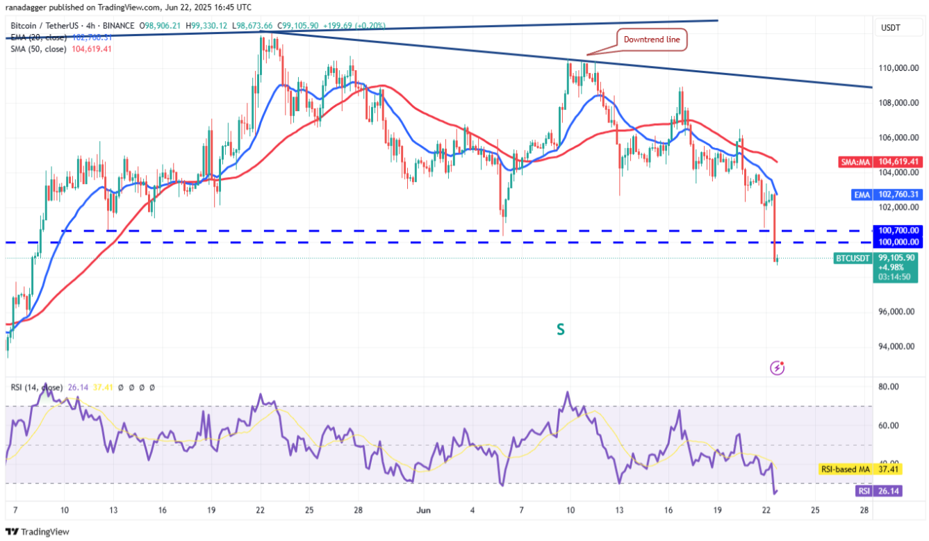 Phe bò sẽ cố gắng kích hoạt một đợt phục hồi kỹ thuật, tuy nhiên sẽ phải đối mặt với lực bán tại mốc $100.700 và sau đó là đường EMA 20 kỳ. Nếu giá quay đầu giảm từ các vùng kháng cự này, đà điều chỉnh có thể tiếp diễn.