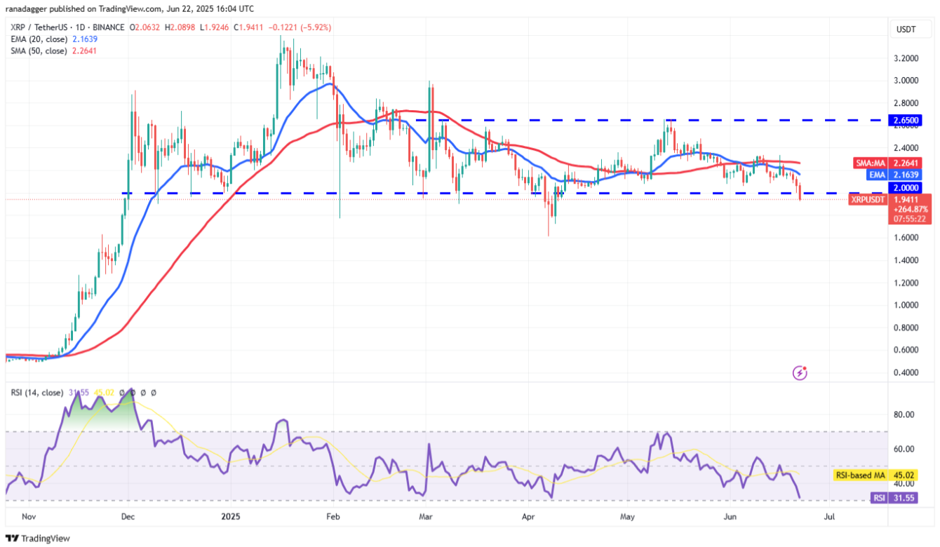 XRP đã phá vỡ biên độ giao dịch từ $2 đến $2,65 theo hướng giảm vào Chủ nhật, cho thấy lực bán đang gia tăng mạnh mẽ từ phía phe gấu.