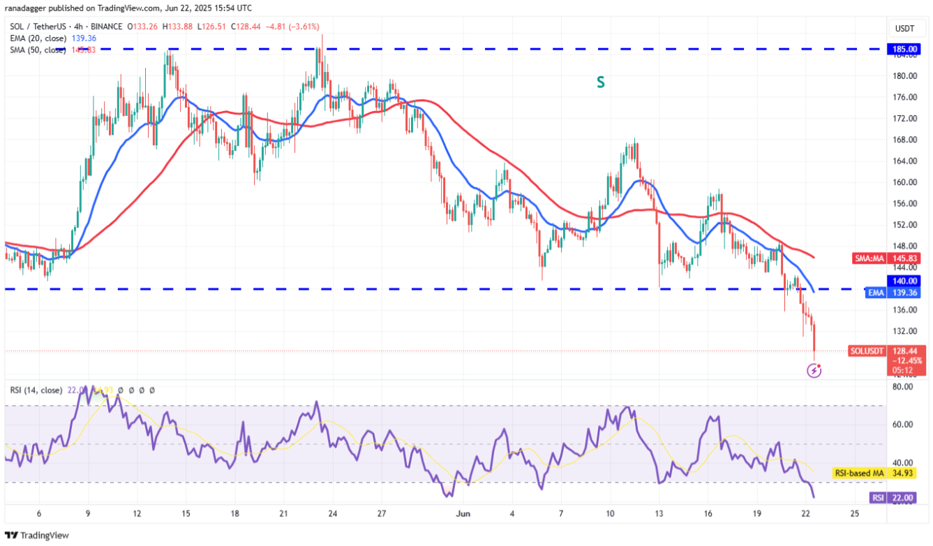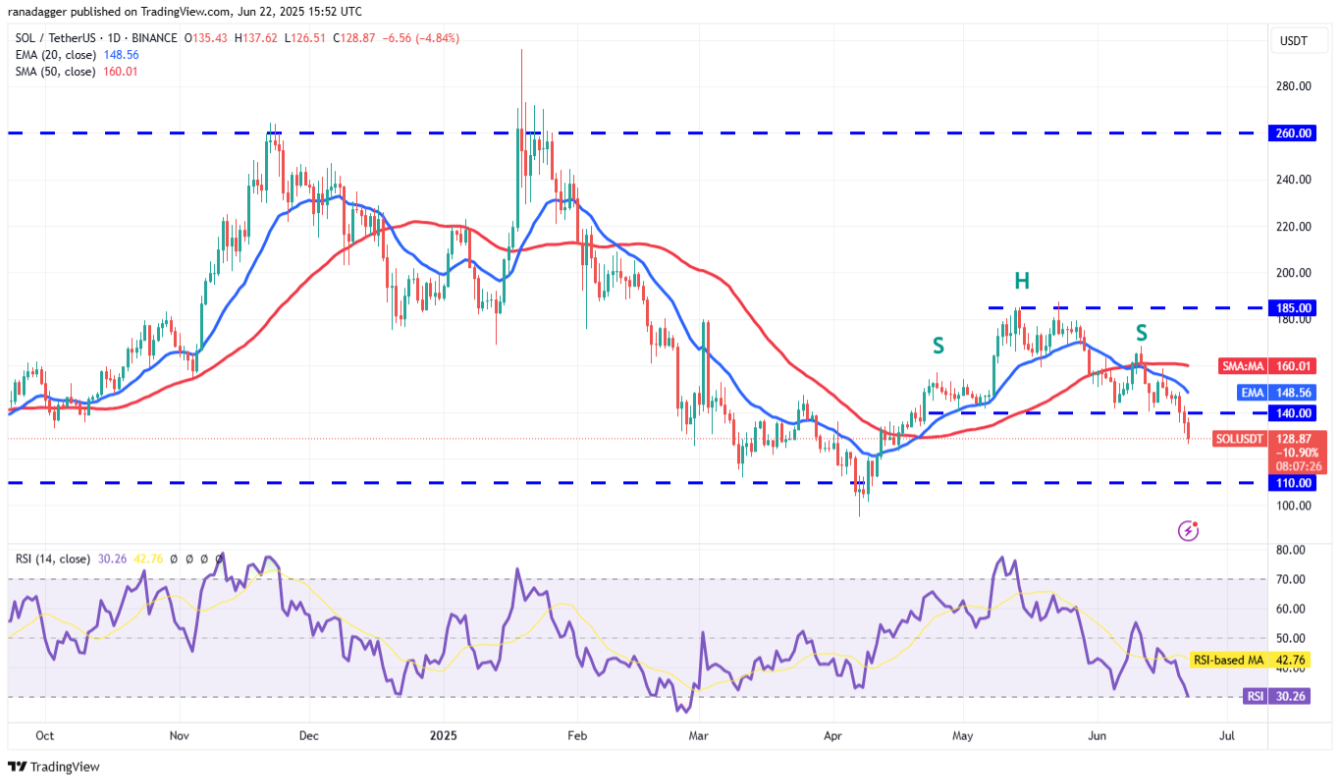 Phe bò sẽ cố gắng khởi động một đợt phục hồi, nhưng có thể sẽ đối mặt với áp lực bán tại đường trung bình động hàm mũ (EMA) 20 ngày, hiện ở mức $148. Nếu giá quay đầu giảm từ EMA 20 ngày, cặp SOL/USDT có thể lao dốc về vùng hỗ trợ $110 và sau đó là mục tiêu của mô hình tại $93.