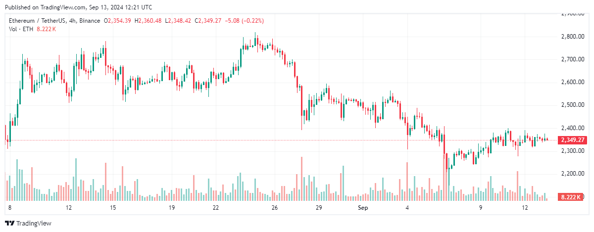 Tiền điện tử lớn thứ hai theo vốn hóa thị trường đang hoạt động tốt hơn một chút. Ở mức 2.348 đô la, coin này giảm 0,1% trong ngày qua.