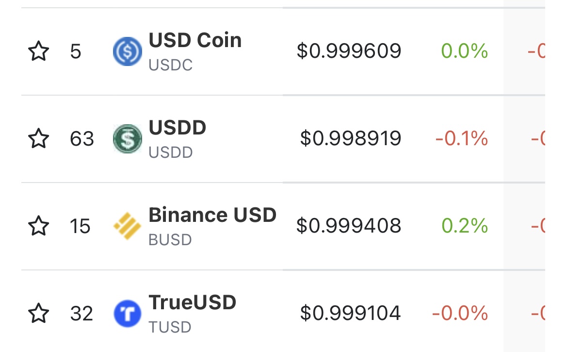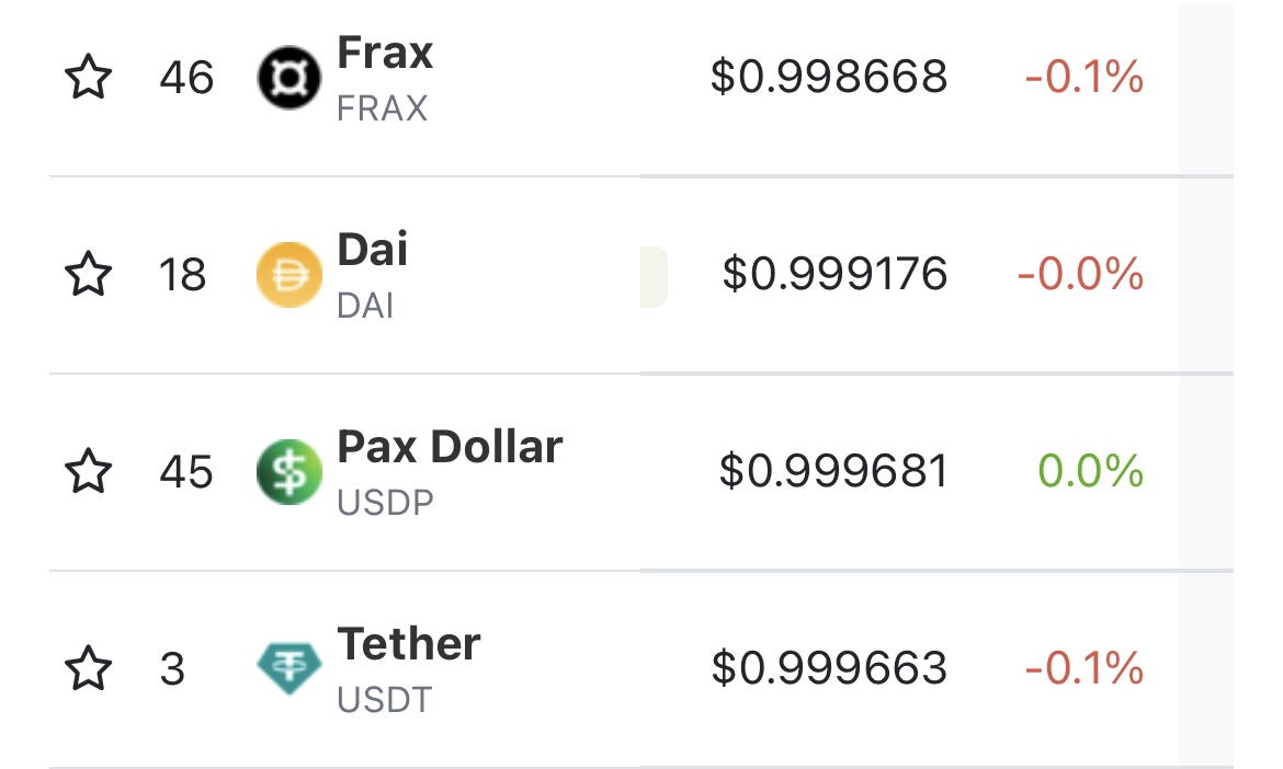 Phần lớn altcoin trong top 100 đang ở trong sắc xanh nhưng hầu hết các stablecoin đang giảm nhẹ khỏi mức chốt 1 đô la.