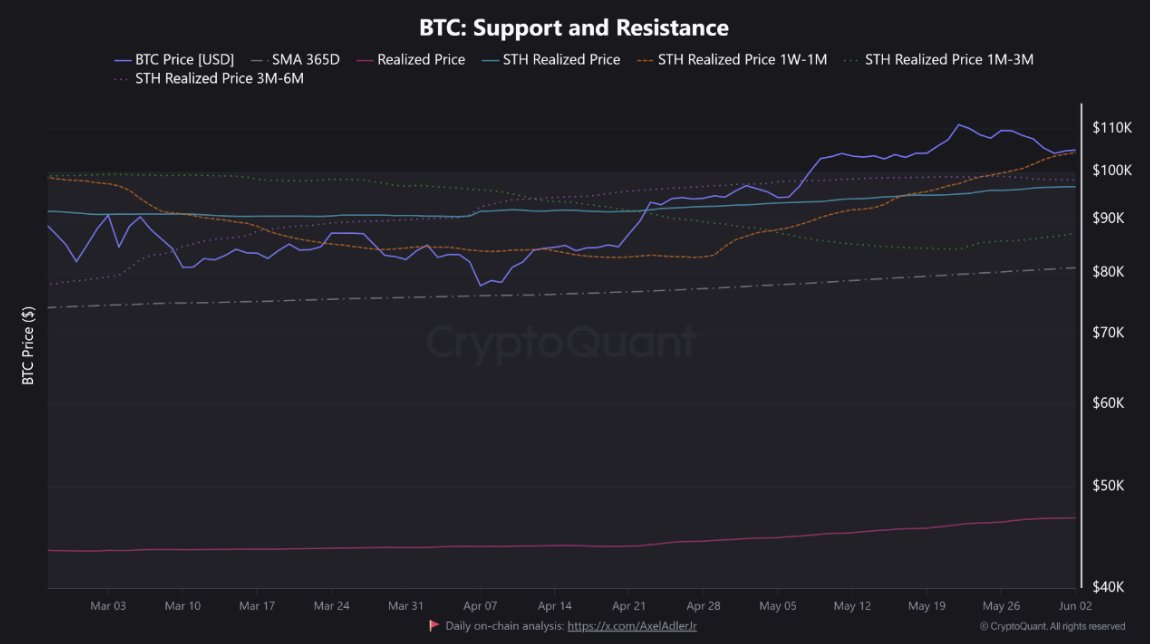 Theo phân tích của CryptoQuant, giá Bitcoin hiện đang tiệm cận vùng hỗ trợ quan trọng quanh mức 96.700 USD – tương ứng với mức giá mua trung bình của các nhà đầu tư ngắn hạn (nắm giữ dưới 155 ngày), dựa trên dữ liệu từ Bitcoin Magazine Pro.