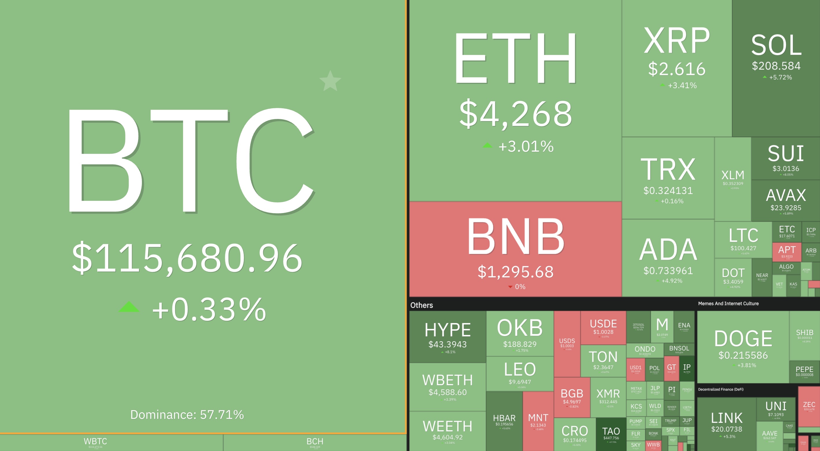 Sau một cuối tuần biến động mạnh, Bitcoin đã hồi phục trở lại trên 114.000 USD, cùng với sự phục hồi của thị trường chứng khoán Mỹ và vàng.