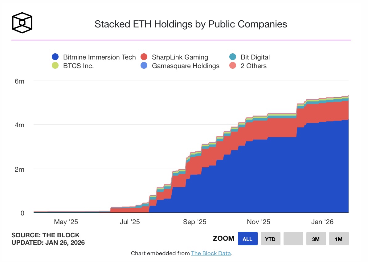 Công ty niêm yết trên Nasdaq với mã BMNR đã mua thêm 40.302 ETH kể từ bản cập nhật ngày 20/1. Tính đến thứ Hai, tổng giá trị tài sản crypto và tiền mặt của BitMine đạt 12,8 tỷ USD. Doanh nghiệp không công bố mức giá mua trung bình, nhưng theo thị giá hiện tại, riêng lượng ETH mua thêm gần đây có giá trị khoảng 117,1 triệu USD.