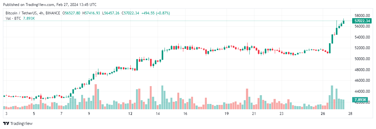 Biểu đồ giá BTC 4 giờ | Nguồn: Tradingview