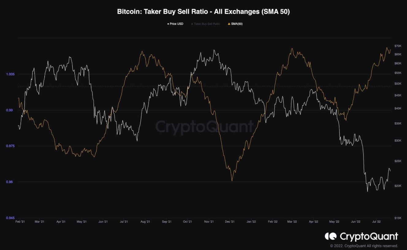 Taker Buy/Sell Ratio của BTC (SMA 50)