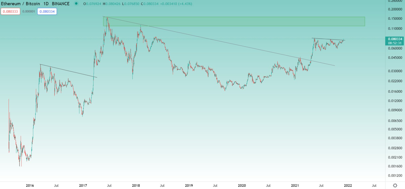 “Vấn đề chỉ còn là thời gian để ETH/BTC bứt phá lên trên phạm vi hiện tại.