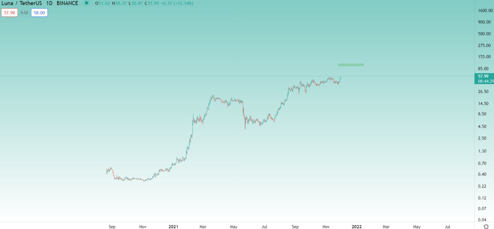 LUNA tăng gần 10% vào thời điểm viết bài, giao dịch với giá $ 61,43.