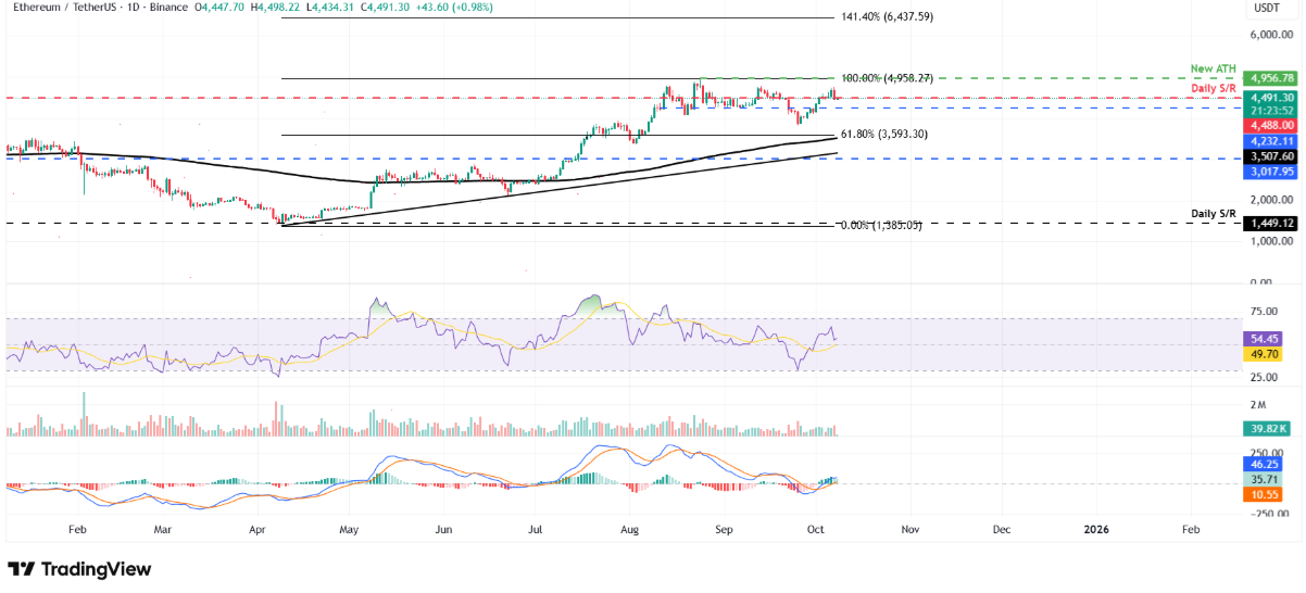 Giá Ethereum đã bứt phá khỏi vùng kháng cự 4.488 USD vào thứ Sáu tuần trước, sau đó kiểm tra lại thành công vùng này và tăng thêm 4,5% trong ba ngày tiếp theo. Tuy nhiên, đến thứ Ba, đà tăng chững lại khi ETH điều chỉnh 5% và đóng cửa trở lại dưới mốc 4.488 USD. Tính đến thời điểm viết bài hôm thứ Tư, tiền điện tử lớn thứ hai thị trường đang được giao dịch quanh 4.491 USD.