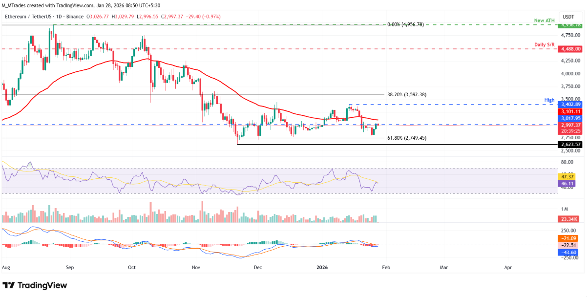 Trong kịch bản tích cực, nếu ETH bứt phá và đóng cửa vững vàng trên ngưỡng kháng cự ngày 3.017 USD, đồng thời vượt lên trên đường trung bình động hàm mũ (EMA) 50 ngày tại 3.101 USD, đà tăng có thể được củng cố, mở ra cơ hội tiến tới đỉnh thiết lập ngày 14/1 tại 3.402 USD.