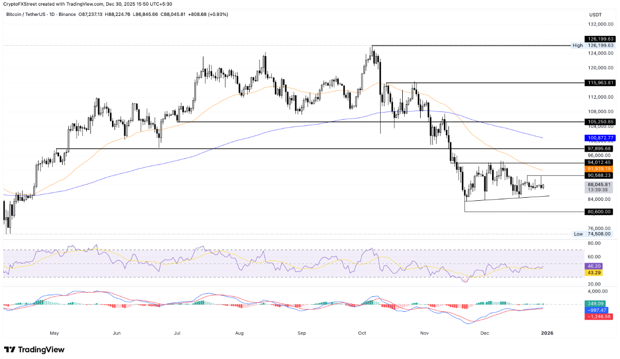 Để xác lập lại đà tăng bền vững, Bitcoin cần đóng cửa trên khung ngày vượt mốc 90.588 USD — mức đỉnh được thiết lập vào ngày 22/12. Nếu điều kiện này được đáp ứng, xu hướng tăng có thể được củng cố, mở ra dư địa tiến tới đường trung bình động hàm mũ (EMA) 50 ngày tại 91.924 USD, trước khi hướng lên vùng kháng cự tiếp theo quanh 94.012 USD, tương ứng với đáy ngày 14/11.