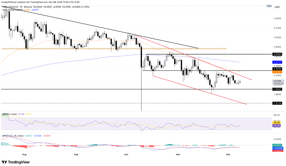Nếu đà tăng được duy trì, XRP có thể hướng tới vùng kháng cự phía trên tại 2,18 USD — được xác lập bằng cách nối các đỉnh ngày 6/10 và 10/11. Trong kịch bản bứt phá thành công, giá nhiều khả năng sẽ mở rộng đà tăng lên đường EMA 200 ngày quanh mốc 2,47 USD.