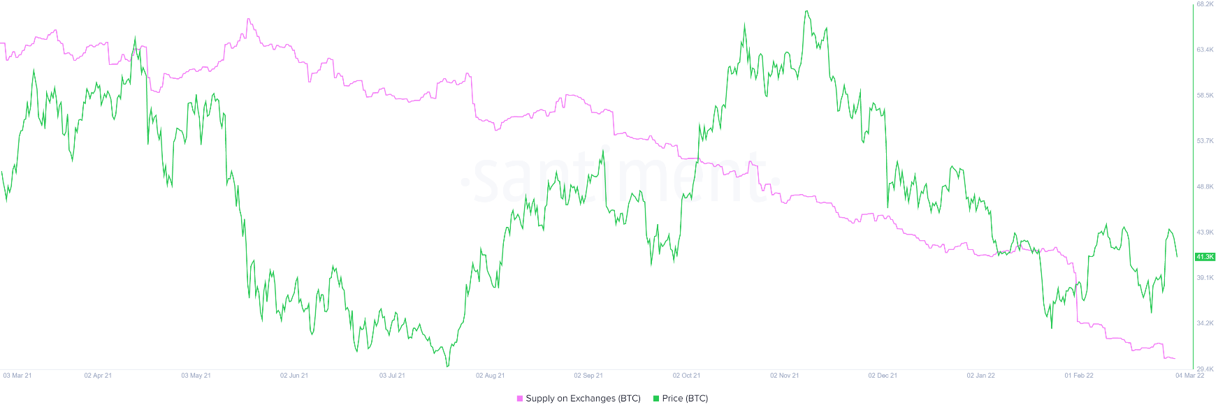 Nguồn cung BTC trên sàn giao dịch | Nguồn: Santiment