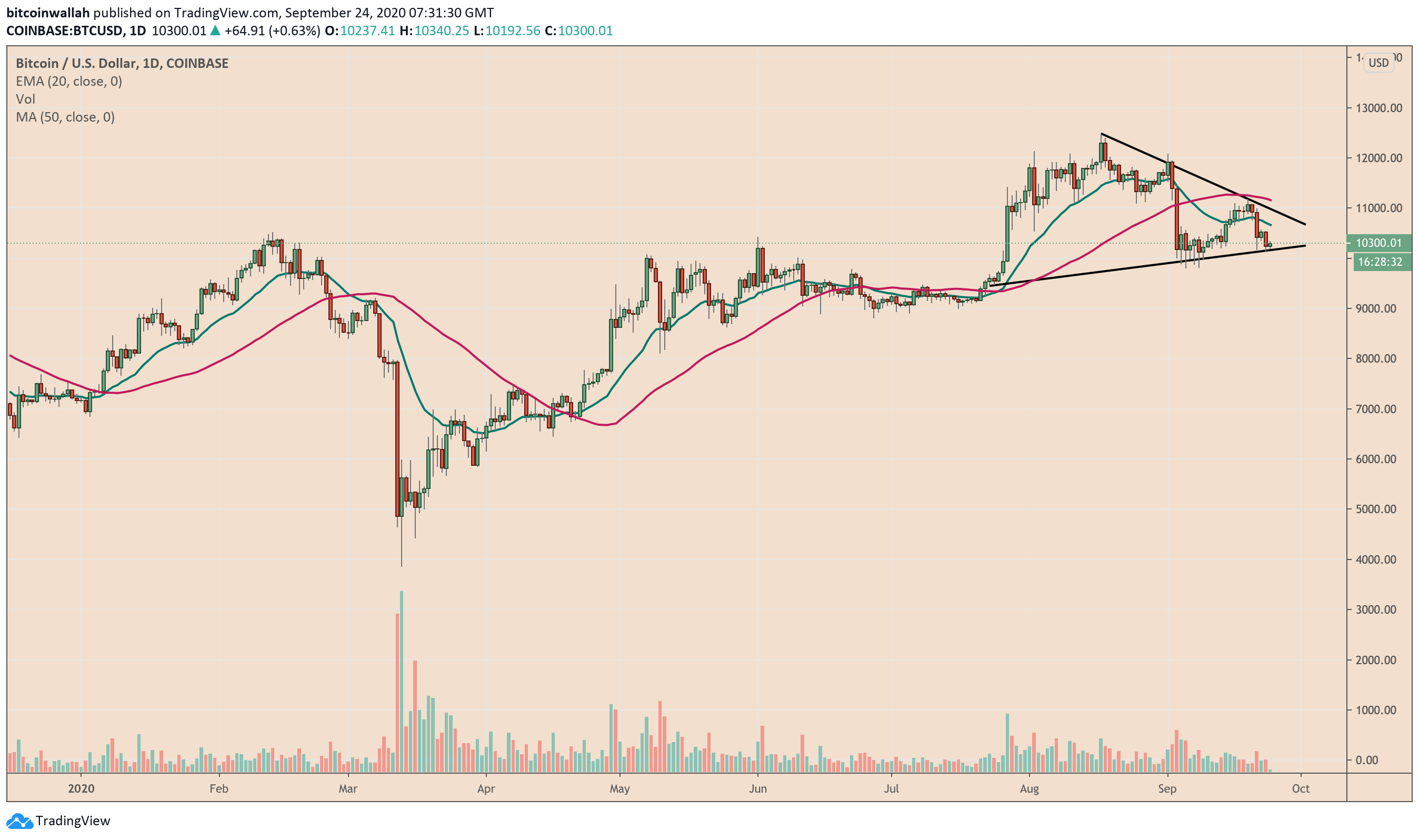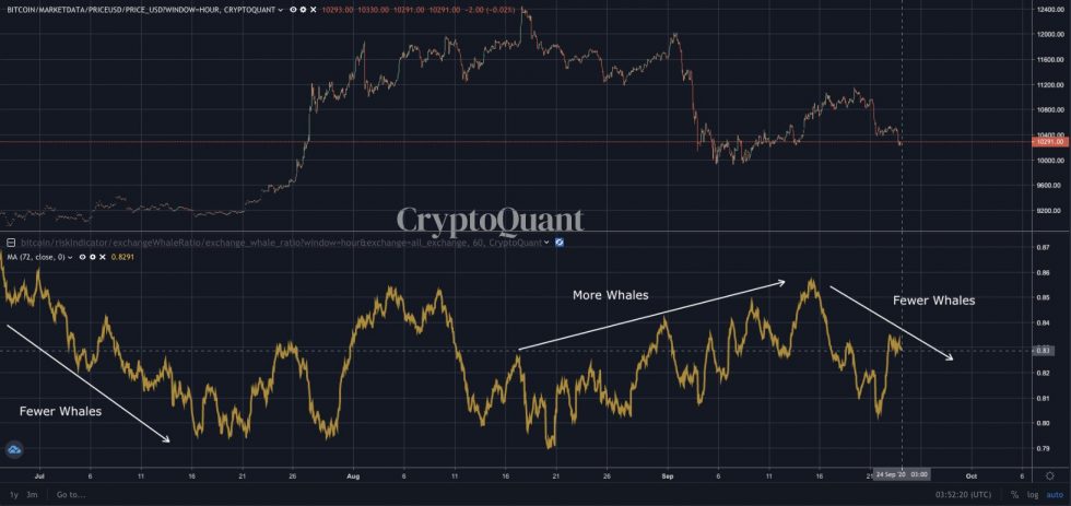 Ông Ju đã dự đoán mối tương quan nói trên trước khi Bitcoin giảm xuống dưới 10.300 đô la vào thứ Tư tuần này. Vào ngày 21 tháng 9, ông ấy đã hình dung ra một đợt điều chỉnh giá ngắn hạn cho tiền điện tử dựa trên sự tăng vọt hoạt động gửi tiền lên sàn của cá voi. BTC đã điều chỉnh sau đó, giảm tới 8% so với mức cao nhất của nó gần $ 10.990.