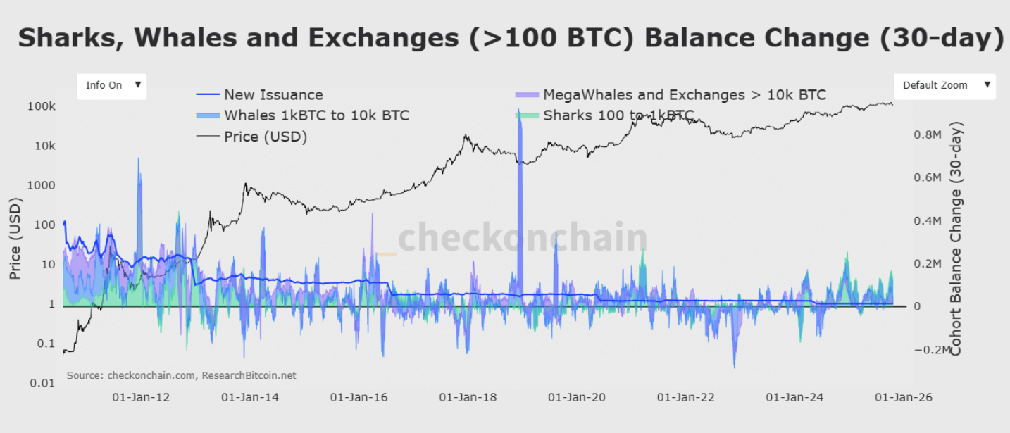 Đáng nói, nhóm nắm giữ từ 100 đến 1.000 BTC – thường được gọi là “cá mập” – lại đang dẫn đầu làn sóng bán ra, khi lượng Bitcoin ròng nạp lên sàn vẫn duy trì quanh mức 117.000 BTC.