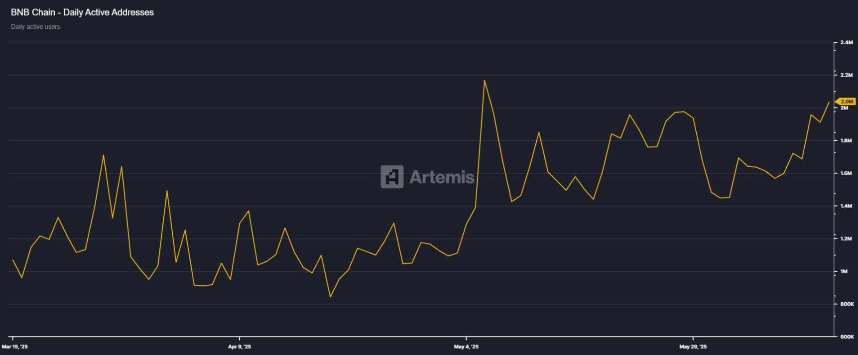 Sự tăng trưởng mạnh mẽ này không chỉ phản ánh sự mở rộng nhanh chóng của hệ sinh thái BNB, mà còn cho thấy nhu cầu ngày càng lớn đối với mạng lưới. Xét về mặt lịch sử, mỗi khi người dùng tăng lên đột biến, lực cầu thường có xu hướng đi lên, tạo nền tảng vững chắc cho các đợt tăng giá tiềm năng.