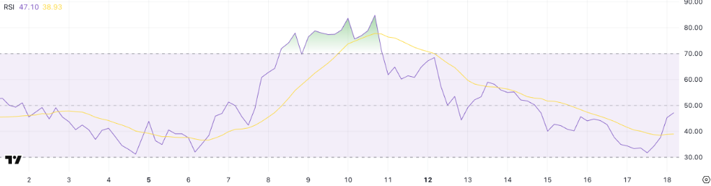 Trong khi RSI vẫn ở dưới mức trung lập 50, sự phục hồi nhanh chóng chỉ ra sức mua mới hoặc khả năng chuyển sang giai đoạn hợp nhất.