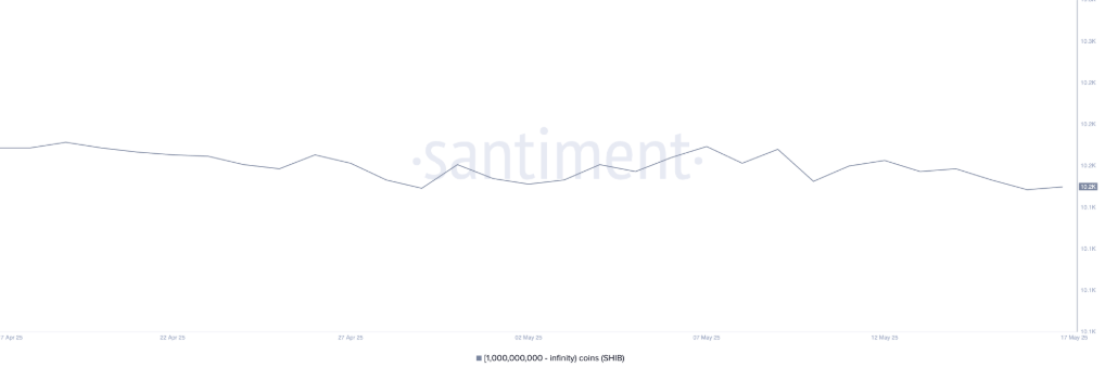 Theo dữ liệu từ Santiment, số lượng cá voi SHIB, holder nắm giữ ít nhất 1 tỷ SHIB, đã giảm nhẹ xuống còn 10.205 so với mức 10.232 được ghi nhận cách đây 9 ngày.