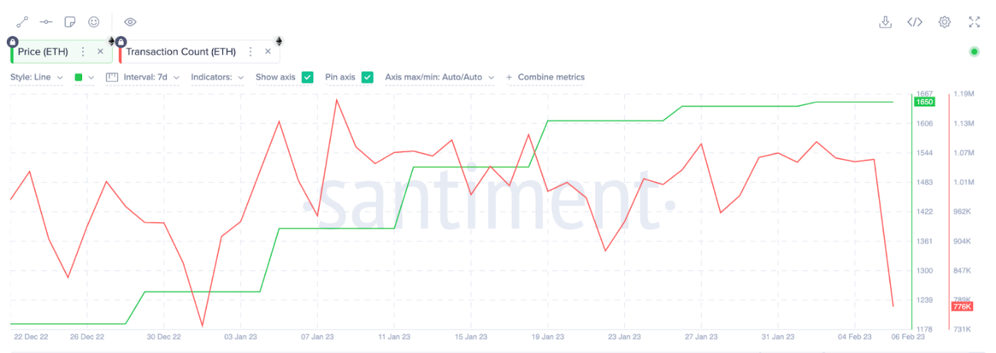 Số lượng giao dịch trên Ethereum vào tháng 2/2023 | Nguồn: Santiment
