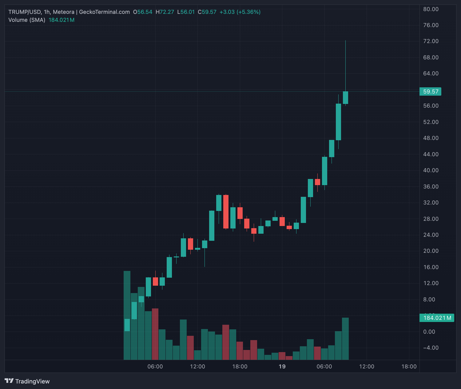 Vào thời điểm viết bài, giá token TRUMP đang giao dịch trên 59 đô la sau khi thiết lập mức cao kỷ lục mới tại 72 đô la với mức tăng 225% trong ngày. Tuy nhiên, chỉ có 200 triệu trong tổng số 1 tỷ token hiện đang lưu hành, điều này đặt ra câu hỏi về tác động của việc phát hành thêm token trong tương lai đối với thị trường.
