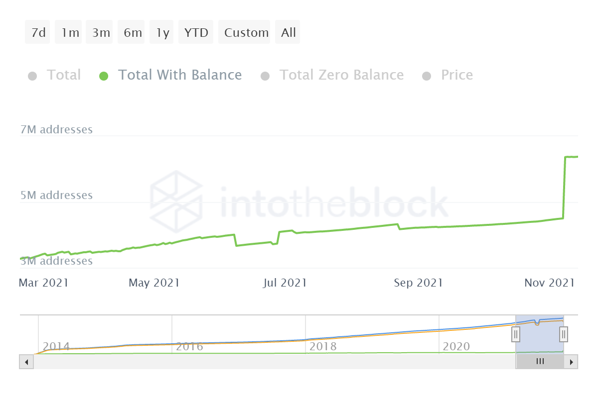 Số lượng địa chỉ DOGE có số dư | Nguồn: Intotheblock