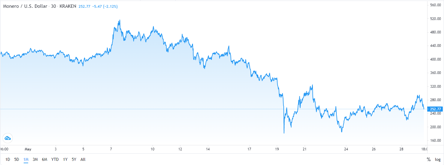 XMR/USD trong 1 tháng qua | Nguồn: Tradingview