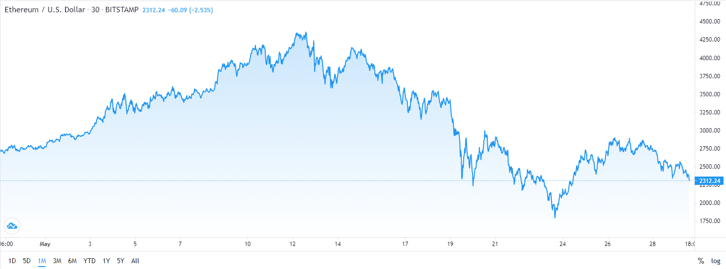 ETH/USD trong 1 tháng qua | Nguồn: Tradingview
