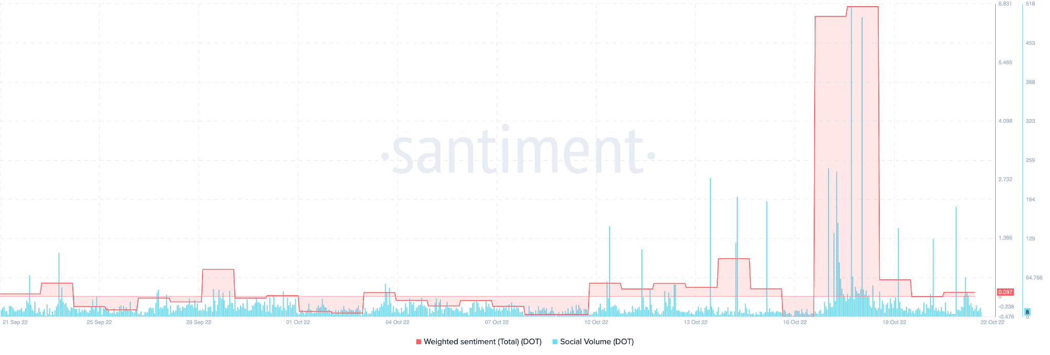 Trên biểu đồ hàng ngày, DOT không tích lũy đủ sức mạnh để tăng, được xác nhận bởi khối lượng giao dịch thấp.