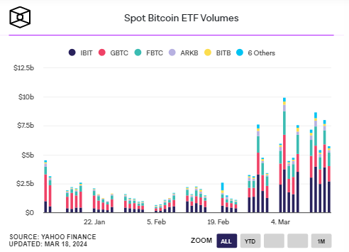 Tổng khối lượng giao dịch hàng tuần của các quỹ Bitcoin ETF giao ngay Hoa Kỳ cũng đạt kỷ lục 35,1 tỷ đô la vào tuần trước trong bối cảnh biến động giá Bitcoin. Khối lượng giao dịch tuần trước của các quỹ ETF cao hơn 15% so với mức 2,24 tỷ đô la của tuần trước đó.