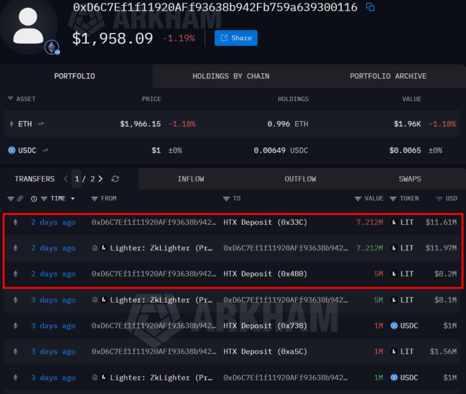 Ở chiều ngược lại, Wintermute đã tích lũy LIT, củng cố kỳ vọng về sự gia tăng hoạt động. Trong khi đó, HTX lại chuyển 6,5 triệu LIT vào hạ tầng zkLighter, phát đi tín hiệu ưu tiên hỗ trợ hệ sinh thái hơn là bán ra ngay lập tức.