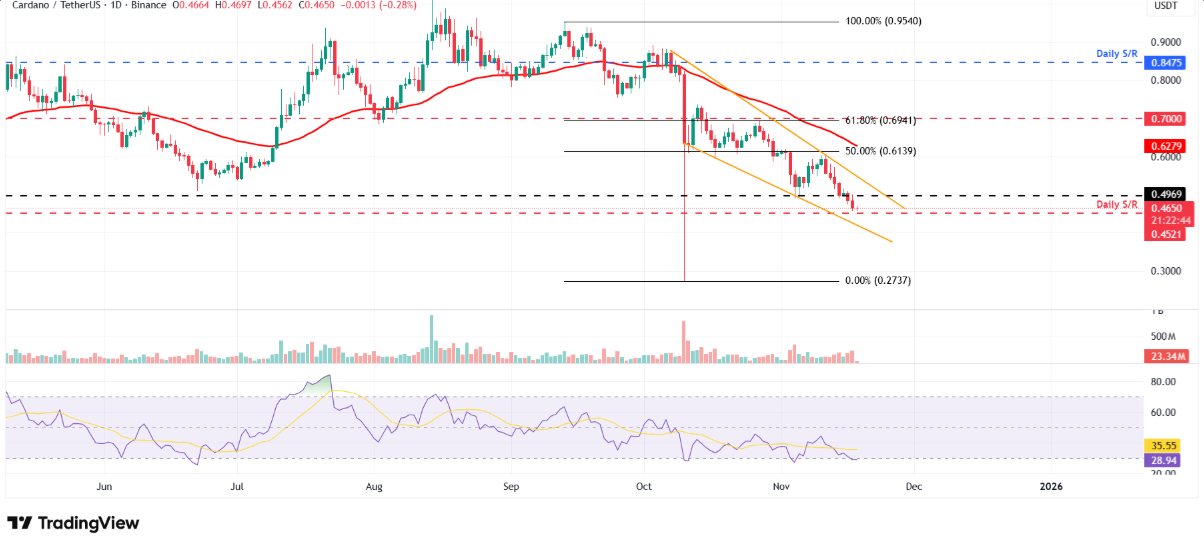 Giá Cardano (ADA) đã xuyên thủng ngưỡng hỗ trợ then chốt 0,49 USD vào Chủ nhật, kéo theo mức giảm gần 8% trong ngày kế tiếp. Đến thứ Ba, ADA đang cố gắng giữ vững vị thế ngay phía trên vùng hỗ trợ quan trọng 0,45 USD.
