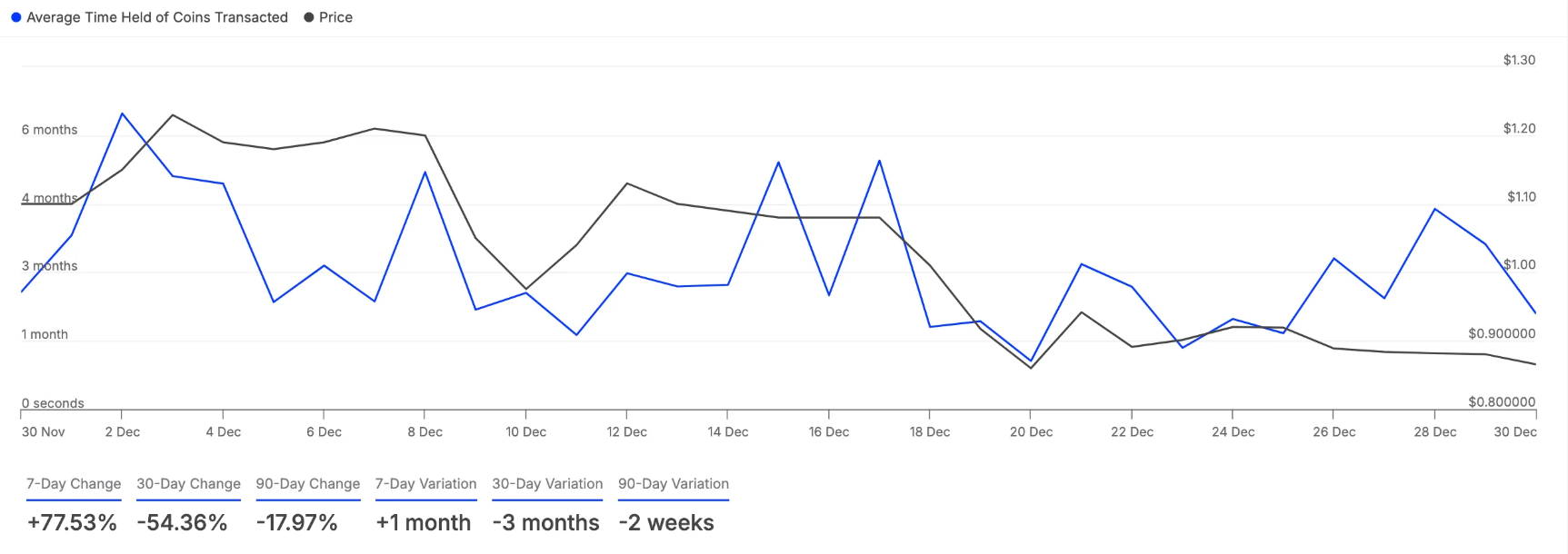Chỉ số này theo dõi khoảng thời gian trung bình mà một ADA được giữ trong ví trước khi bị bán hoặc chuyển đi.
