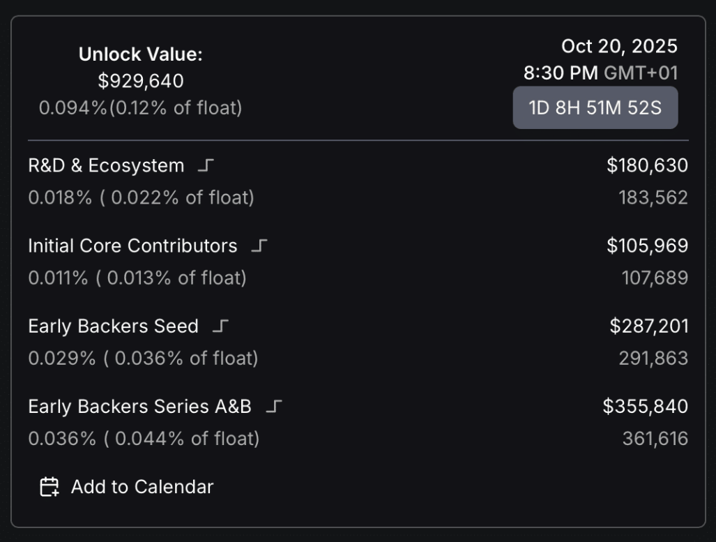Phần còn lại, khoảng 180.630 USD, được phân bổ cho R&D và phát triển hệ sinh thái, nhằm hỗ trợ giao thức thay vì tạo áp lực bán trên thị trường. Do các token này thuộc về nhà đầu tư dài hạn và cộng tác viên dự án, khả năng xuất hiện một đợt bán tháo ngay lập tức là rất thấp.