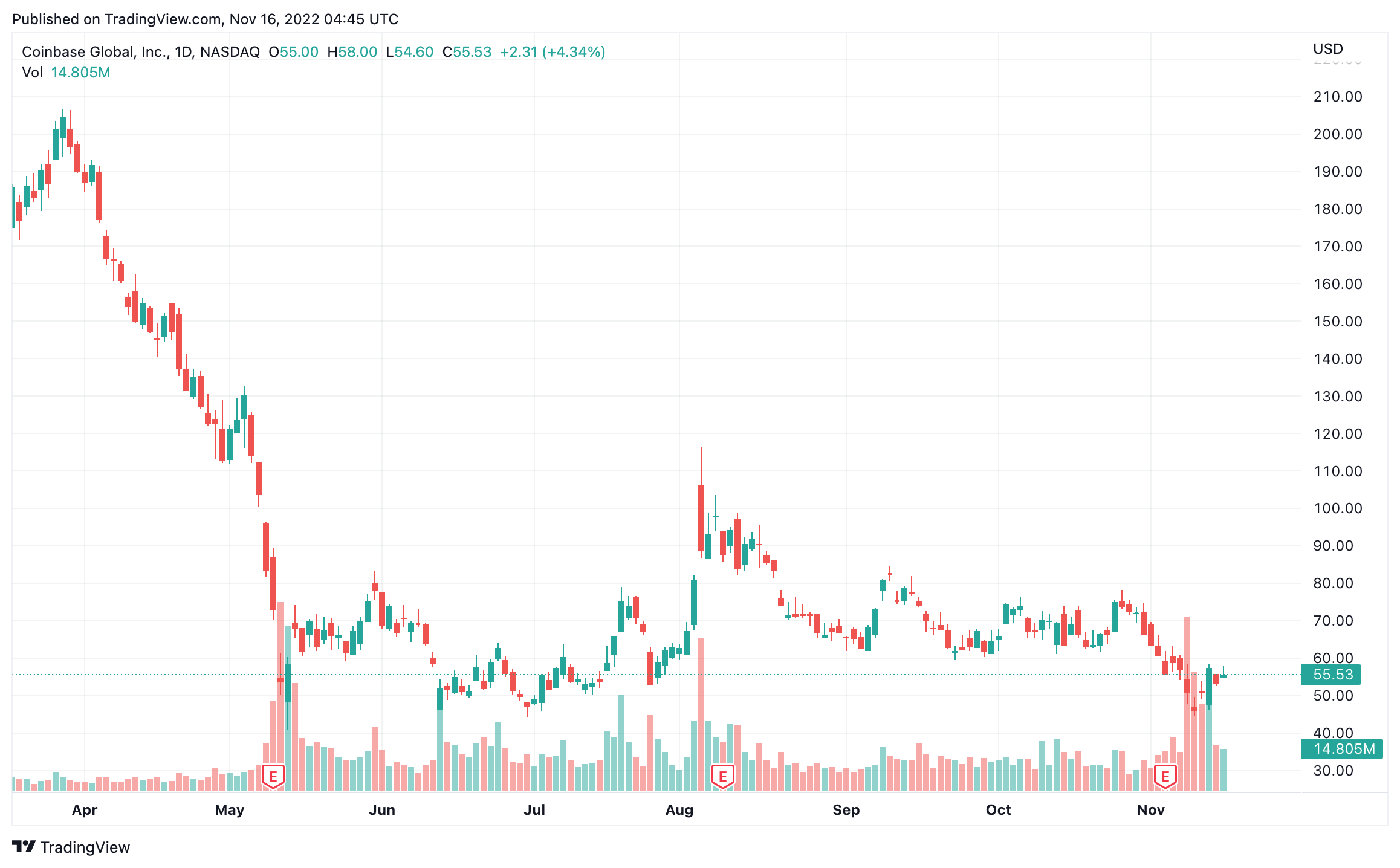 Biểu đồ giá COIN trên sàn Nasdaq hàng ngày | Nguồn: Tradingview