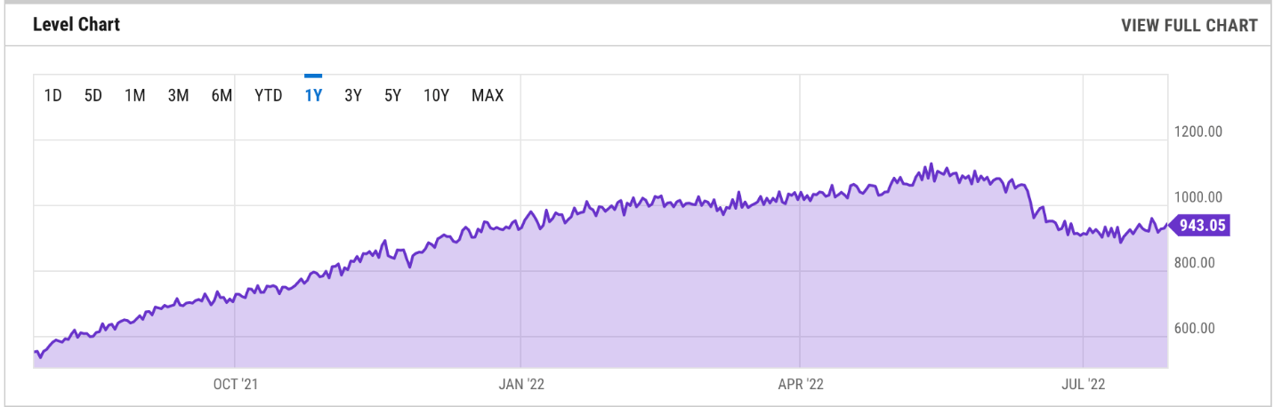 Hiệu suất hashrate Ethereum kể từ tháng 9/2021 | Nguồn: YCharts