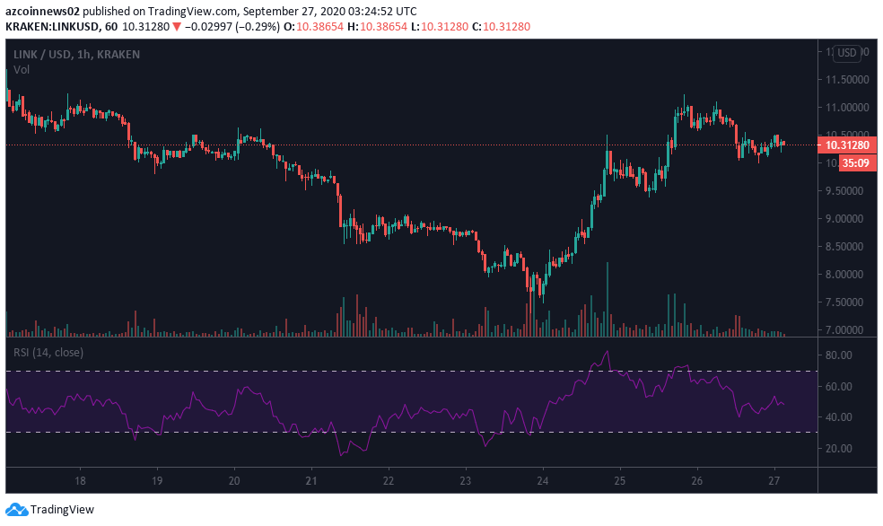 Tại thời điểm viết bài, Chainlink đang giảm hơn 4% ở mức giá hiện tại là $ 10,312.