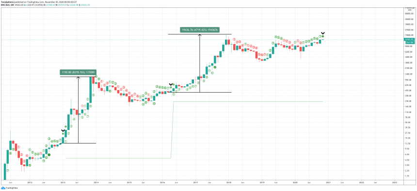 Nhiều năm sau, khi thị trường gấu mở rộng hơn kết thúc, Bitcoin đã bùng nổ thêm 4.700% sau khi thiết lập hoàn thiện. Một lần nữa, việc bán đi sẽ là một thảm họa với tư cách là một nhà đầu tư. Trong cuộc biểu tình năm 2017, TD Sequential thậm chí còn kích hoạt thiết lập bán đếm ngược “13”, có nghĩa là xu hướng này bị khai thác quá mức.