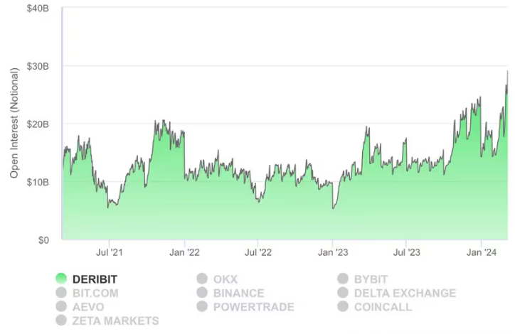 Hoạt động tổng thể trên Deribit, chiếm 85% thị trường quyền chọn tiền điện tử toàn cầu, đã tăng lên, với Bitcoin tăng 58% trong năm nay, tiến sát khu vực $ 69.000.