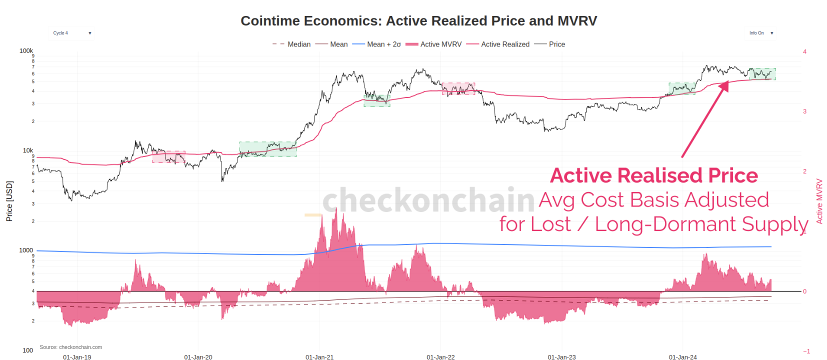 Nghiên cứu của các nhà phân tích _checkonchain, Checkmate và dpuellARK đã giới thiệu một phương pháp tinh tế để đánh giá giá trị thực tế của Bitcoin, cung cấp cái nhìn sâu sắc hơn về cơ sở chi phí của những người tham gia thị trường tích cực. Phương pháp này xem xét các số liệu giá thực tế của Bitcoin, được điều chỉnh theo nguồn cung đã mất và không hoạt động trong thời gian dài, qua đó làm sáng tỏ xu hướng định giá thị trường.