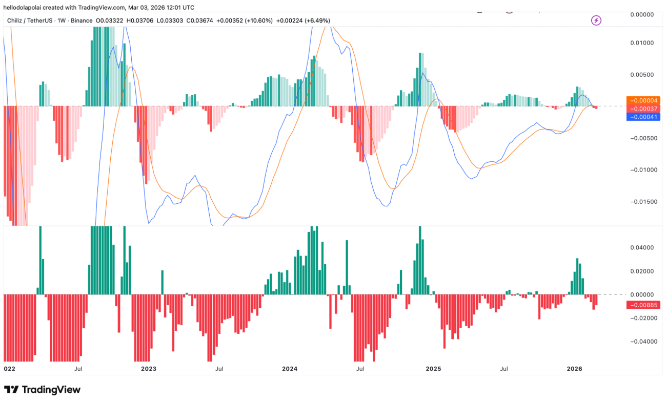 Trong bối cảnh lịch sử, những giao cắt như vậy thường mở ra các nhịp điều chỉnh kéo dài, đặc biệt khi chúng xuất hiện sát các vùng kháng cự quan trọng. Việc CHZ đang trong quá trình kiểm tra ngưỡng cản phía trên càng khiến tín hiệu tiêu cực từ MACD trở nên đáng quan ngại.