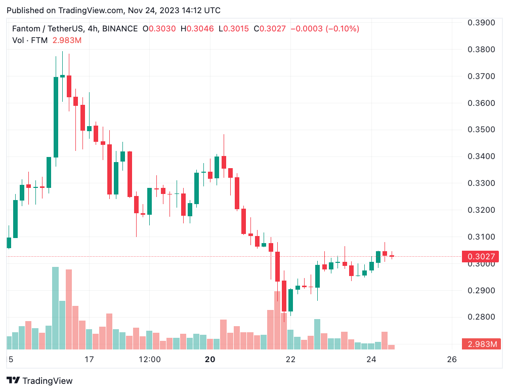 Bất chấp sự gia tăng về khối lượng giao dịch và phí gas được ghi nhận vào ngày 22 tháng 11, FTM không chứng kiến bất kỳ phản ứng tích cực nào về giá.