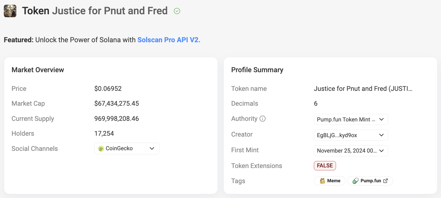 Theo dữ liệu từ Solscan, vào thời điểm hiện tại, JUSTICE có vốn hóa thị trường hơn 67,4 triệu USD với hơn 14.000 holder, được đúc trên Pump.fun.