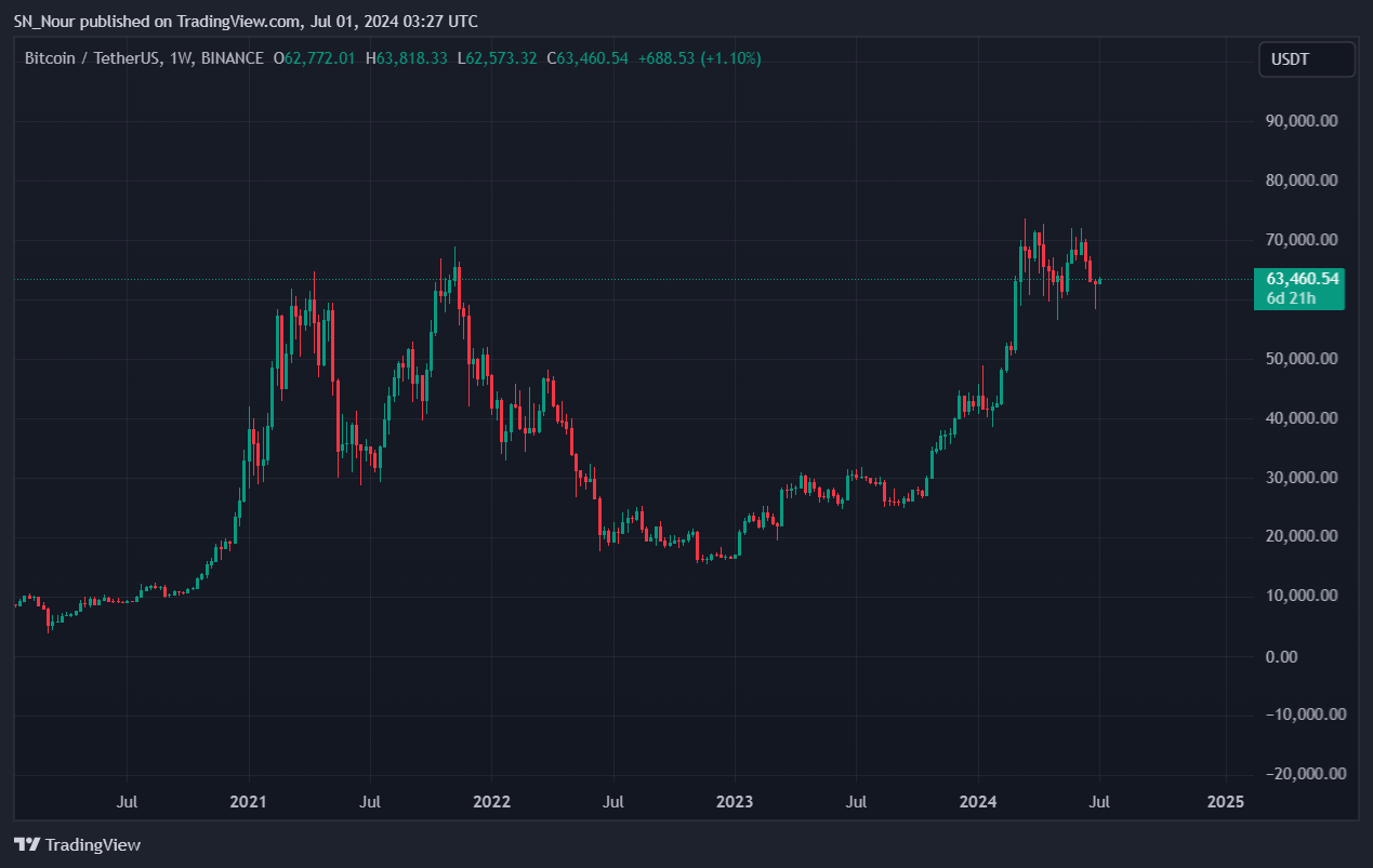 Biểu đồ BTC/USDT hàng tuần | Nguồn: TradingView
