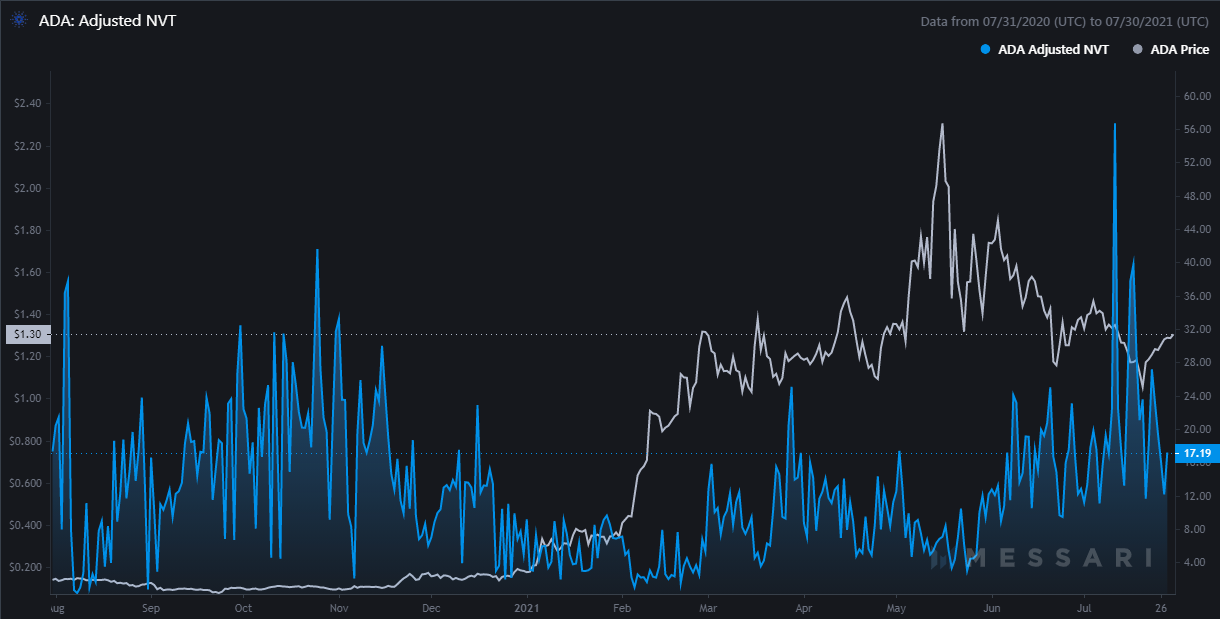 Tỷ lệ NVT đã điều chỉnh của ADA | Nguồn: Messari